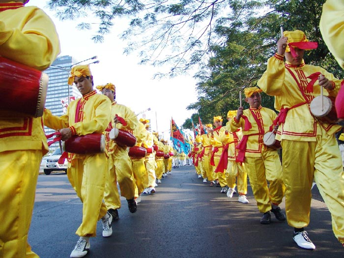 有几个电视台记者说,早就听过有关法轮功的事,只知道法轮功在中国被迫害、被镇压,却没想到法轮功的文艺队伍,竟然这样精彩,腰鼓队,仙女装,都是正宗的盛唐文化!记者们感叹道:法轮功人怎么个个脸上一片阳光,承受了那么多迫害,没有一点压抑或仇恨的表情!