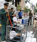 川流不息的人群中不少人停住了脚步,驻足阅读我们的展板,主动索取资料,详细了解法轮功真象。很多人对酷刑的残忍手段,如用盐水灌食以逼迫法轮功修炼者放弃真善忍的信仰,表示非常不可思议,当即签名,表示他们希望把迫害法轮功学员的元凶送上法庭的心声。还有一些要捐款的人,得知法轮功不接受捐款后,也改以签名的方式帮助制止这场迫害。其中的不少人签了名之后,关切的问,我还能做些什么?我们告诉他们,可以去告诉周围的人法轮功真象,或多拿一些资料去分发给亲朋好友们。他们都很乐意的带走了更多的传单,VCD等真象资料。一位老人拿了好几份资料,说是要发给他们养老院的老人们。一位教师向我们索取了展板上的图文并茂的信息和高蓉蓉被毁容一案的消息资料,他需要到学校作为给学生上课的教学内容。还有一位女士在看到灌食的酷刑和酷刑手段的说明,泣不成声的在法办江泽民的签名表上留下了姓名和地址。她哽咽着问学员,真的每天在中国都发生这样的酷刑吗?当学员告诉她,这都是真实的在中国发生着。她更是泪如泉涌,伤心极了,她的先生在一旁也两眼通红,看上去也十分的难过,等着太太签了名,他也要签名。因为签名的人常常是一个接一个,有时还有好几个人排队等着签名,我们临时再准备了一份签名册。