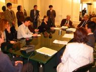 两名原告法轮功学员接着介绍了他们因为坚持修炼法轮功及为法轮功说公道话所遭受到的残酷迫害,呼吁国际媒体运用他们独特的影响力,揭露江泽民集团的谎言与暴行,帮助在中国无辜受迫害的法轮功学员。