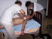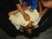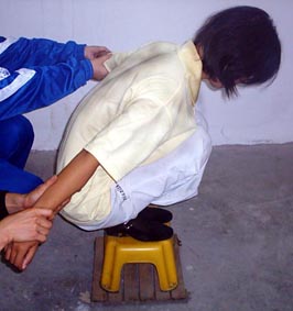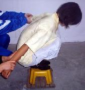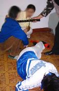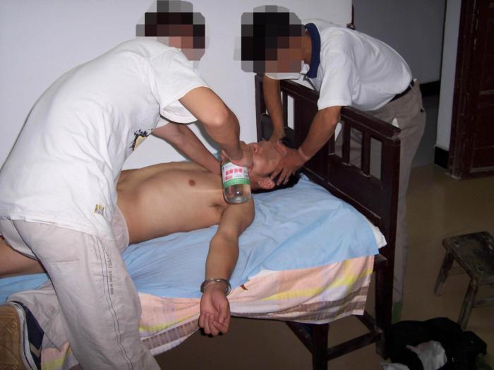 劳教所对新抓去的法轮功学员采取“轮番连坐制”,时刻不停的强制洗脑,播放污蔑师父及大法的录音录像等卑劣手段“轮番轰炸”,不让睡觉,不让上厕所,时间持续至少一个星期,直至所谓的“转化”。不法人员们还对法轮功学员大量用刑,因为怕打得伤痕累累而有证据被起诉,它们想出各种毒计来迫害大法弟子,其中之一是用大塑料口袋一层层套在人的脑袋上,然后在脖颈处扎紧,使人呼吸困难,最后窒息而死。这样不留任何伤痕。