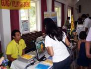 身心博览会上 人们纷纷来到法轮功展位了解真象(图)