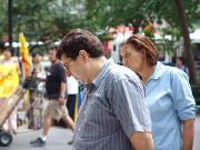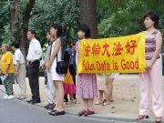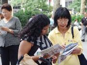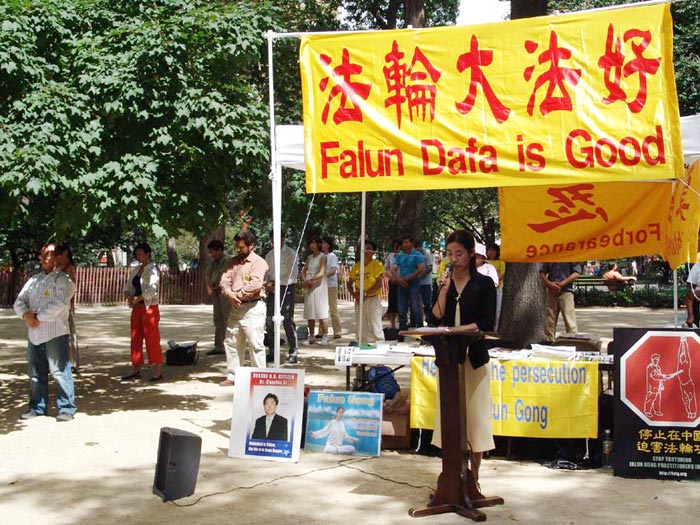 ![]() 澳洲学员戴志珍带着4岁的女儿小法度来到纽约,告诉人们她的丈夫因不放弃修炼法轮功而被折磨致死的悲惨故事,呼吁人们关注中国大陆法轮功学员的基本人权,共同制止这场惨无人道的对善良人民的迫害。 |