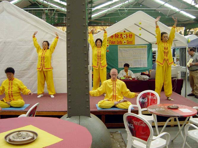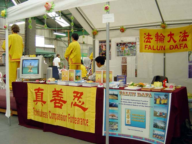悉尼法轮功学员这是第三次应邀参加这一活动。根据活动的特点学员选择大型的酷刑展板和法轮大法洪传世界的照片展板,效果非常好。许多人来看展板,他们简直不敢相信在今天的中国还有(酷刑迫害法轮功学员)这样的事情发生。他们不断的向学员提问题,学员们也认真的回答他们,当他们明白了真象时就主动拿笔签名呼吁停止迫害。在附近玩的中学生一伙一群的过来看展板并签名。还有许人多马上打听在什么地方可以学功。