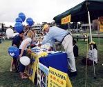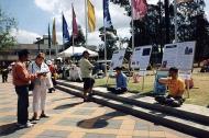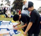 上午9时学员们就把信息台布置好了,首先开始炼功。不一会儿,当地舞台节目主持人用麦克风告诉大家:“法轮大法的信息台就那边,你们到那里签字去吧。”许多人过来看展板,有的人提出问题,学员都一一解答。当他们了解到法轮功在中国无端遭受残酷迫害的真象后就主动拿笔签名支持法轮功学员和平反迫害。