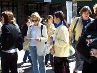 来自欧洲的法轮功学员在纽约街头洪法讲真象在42-57街我们和其他国家的学员上周被分置在曼哈顿42街,一位来自英国曼彻斯特50多岁的女学员说:我的第一印象最深的就是,人们看到反酷刑模拟展时都张着嘴,呈震惊状。