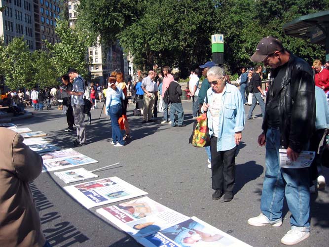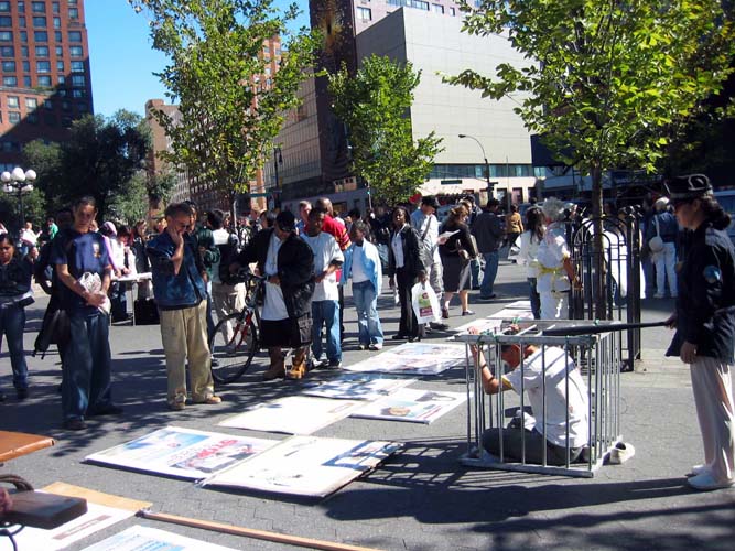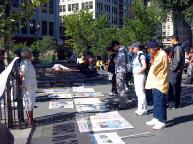 本周在曼哈顿每天都有8-9个反酷刑展示点,获得了很好的讲真象效果。