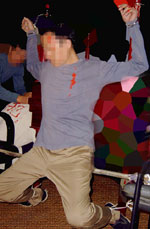 ![]() 胶皮棒击胫骨 | ![]() 胶皮棒抽脚心 |