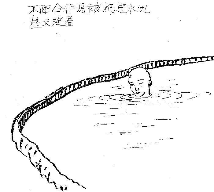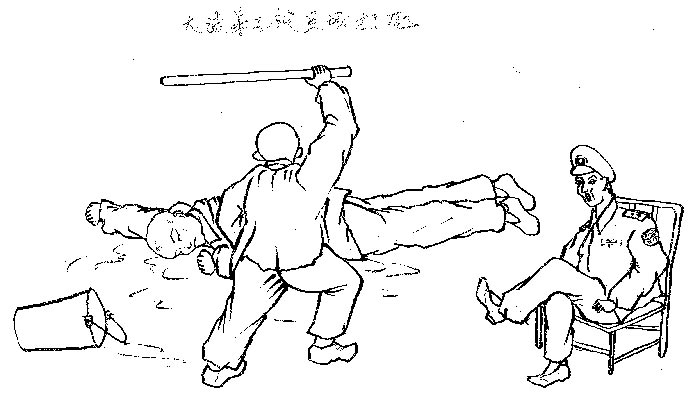 【明慧网2004年9月24日】这是一位法轮功学员画的描述在九台饮马河劳教所大法弟子所遭受的