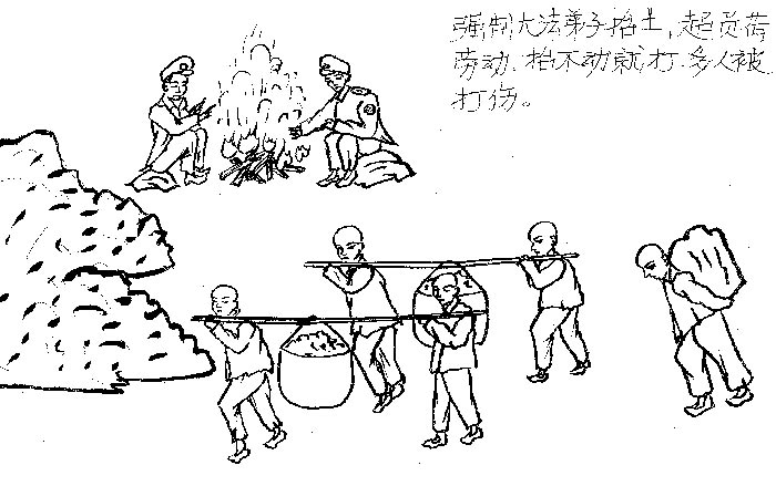 强制大法弟子抬土,超负荷劳动,抬不动就打,多人被打伤