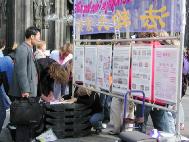 ![]() 游人在阅读真象展板 | ![]() 了解了真象后,很多人签名反对迫害 |