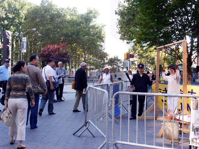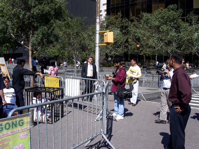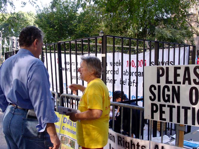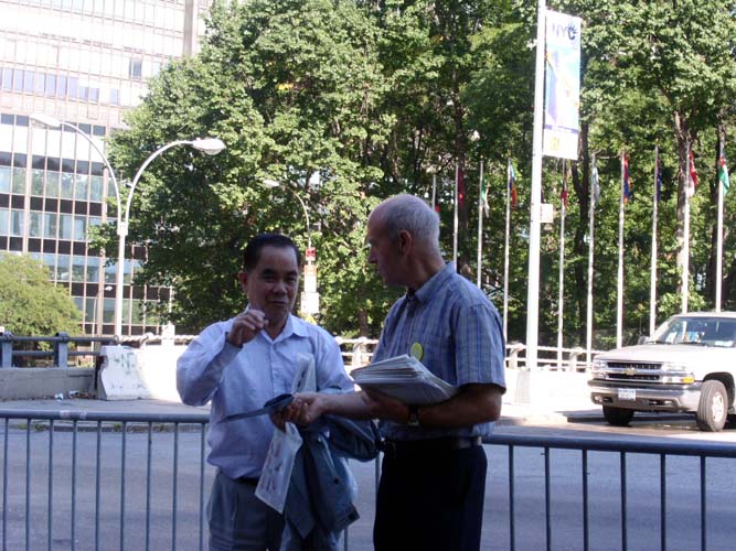 图片报道:在纽约联合国总部召开年会期间讲法轮功真象