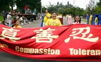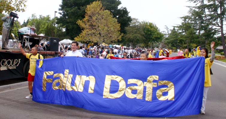 这是法轮功学员第五年参加当地的游行。五年来,法轮功学员积极参加当地的社区活动,很多市民早已了解法轮大法的美好。2000年,市长史密斯先生就向学员颁发了法轮大法周的褒奖状。今年,当法轮功的队伍刚一出现,观众就不断鼓掌。