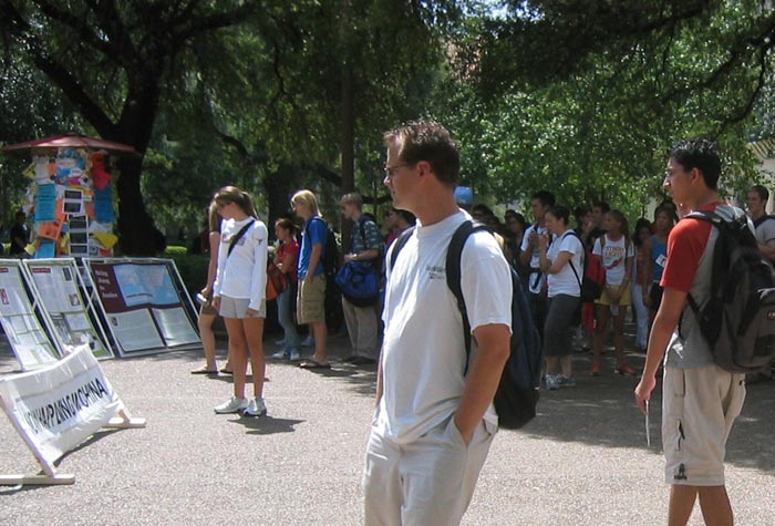 一批一批的人群向展台汇聚,带着凝重的神情,震惊的看着发生在中国的无比黑暗的一幕。学员所能展示的只是冰山一角,江氏集团极力掩盖着对法轮功群众的疯狂虐杀的事实,在海外向中国人灌输着编造出来的谎言,煽动仇恨,制造混乱,使无辜的华人受到蒙蔽。当江氏集团对法轮功群众和广大华人所犯下的罪恶一览无余的暴露在光天化日之下时,所有的人不论肤色都会愤怒,因为那是对人类的犯罪。