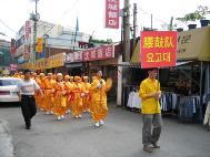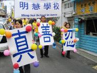 在沿街发传单讲真象的过程中出现了很多感人的场面,有位八十多岁的老奶奶在听到同修为她讲真象后,眼含热泪,激动万分,她握着这位同修的手一遍遍的用中国语说:“我可见到你了,我可见到你了……”很多中国同胞象见了久别的亲人一样,主动握着法轮功学员的手,认真的听着真象,特别是当游行队伍到达加里峰华人街时,一群观众连续三次朝游行队伍鼓掌喝彩,眼前的一幕幕既亲切又感人。
