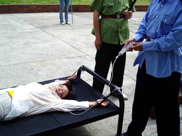 ![]() 真人模拟反酷刑展──老虎凳 | ![]() 真人模拟反酷刑展──强制灌食 | ![]() 真人模拟反酷刑展──关小笼子 |