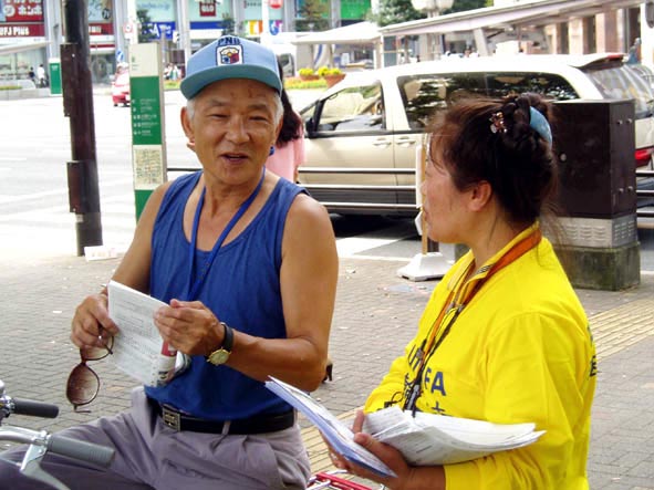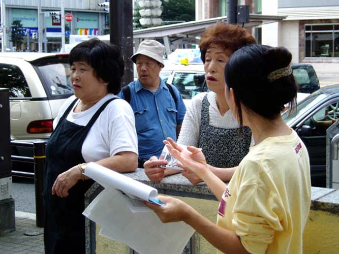 ![]() 大法弟子在向过路人讲清真象 | ![]() 大法弟子在向过路人讲清真象 | ![]() 大法弟子在向路人展示功法 |