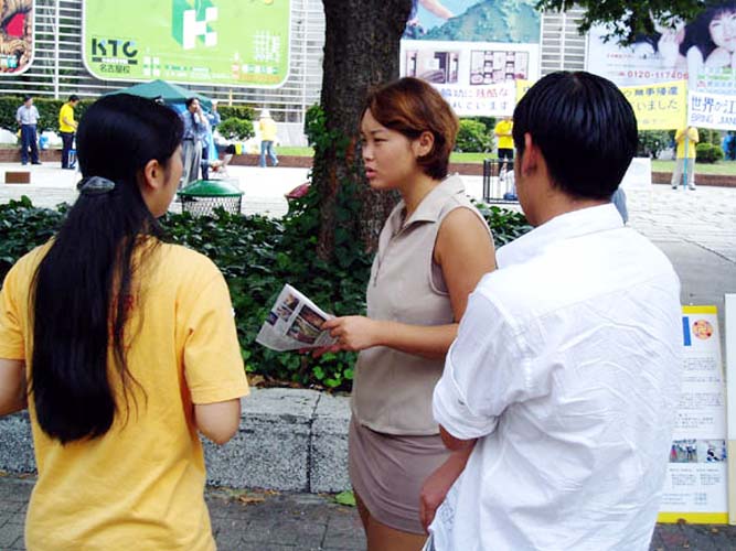 在名古屋也居住着很多外国人,他们非常希望了解真象,当看到展板及真人模拟展时,都主动向弟子了解真象。有个尼泊尔的青年看到真人模拟展之后,非常想了解真象,向弟子问了很多的问题,当听说尼泊尔也有人修炼法轮功时他非常惊喜。