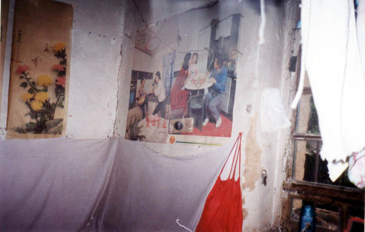 ![]() 屋内一角 | ![]() 漏雨的屋顶(屋顶上有一条1cm左右宽的缝子) |