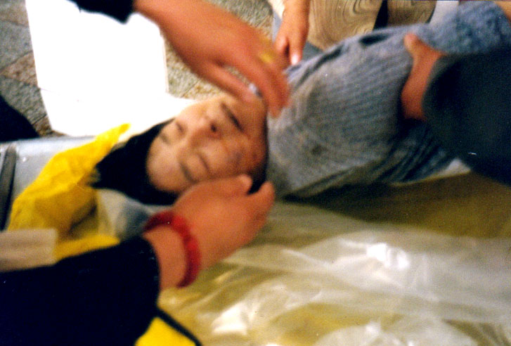 当此噩耗正使我悲痛得撕肝裂肺之时家里又发生的不幸之事对我更是雪上加霜。阿勇的姐姐(也是法轮功学员)前去认尸时被非法抓进洗脑班(江泽民集团对法轮功学员的非法拘禁),不法之徒妄图强迫她放弃修炼法轮功,但她认为信仰以“真善忍”为原则的法轮大法没有错!这是做人的基本权利,所以她坚决拒绝放弃。但是利令智昏的公安不顾其胞弟刚刚去世的尸骨未寒,在8月又非法判她劳教两年。阿勇的父亲经受不住这白发人送黑发人的悲痛、承受不住刚刚痛失爱子又闻爱女被判刑的人间最大不幸--生离死别的巨大打击,在9月老人家含着悲冤离开了人间。这接二连三的不幸一起向我袭来,使我几个月里陷入无比悲痛之中。