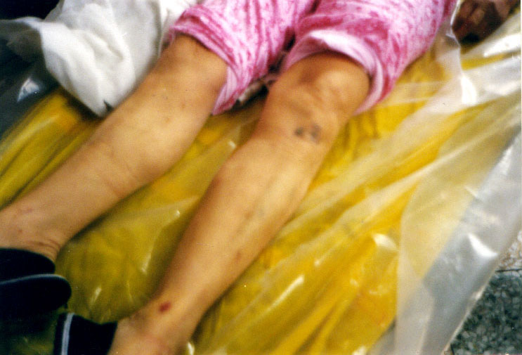 噩耗传来,爷爷奶奶带着一岁半的黄颖从山东赶来。罗织湘的哥哥、姐姐也来了。派出所、610说罗织湘是“自杀”,但却拒绝家人请法医验尸的合理要求。家人说,罗织湘被迫在外面漂泊了两年为什么不自杀,到你们“学习班”就自杀?她有身孕,并与她婆婆讲,要把孩子生下来,法轮功明确指出自杀是罪,她怎么会去自杀?派出所、“610”原来想叫家人把罗织湘先火化了再解决问题,家人回答说,只有罗织湘的丈夫才有权签单火化。但他们把黄国华非法判了刑拘,不让他出来见妻子最后一面,遗体只有停放在殡仪馆。她家人去信访,也得不到答复。