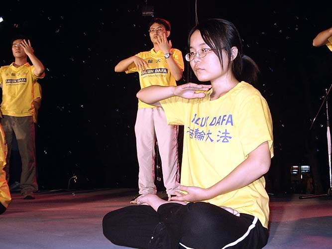 ![]() 法轮功功法表演(团体照) | ![]() 功法表演特写 |