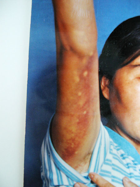 回到家里呆了几天,伤势才有所好转,家里的亲朋好友就让我照了像,让我们去北京市纪检去告当地的派出所,我去了北京纪检那,那个负责人详细的询问了当地的情况,他们听后都惊呆了,那个负责人说一定要好好管管,可到后来就不管了,好几年都过去了,它们一直没得到法律的制裁。