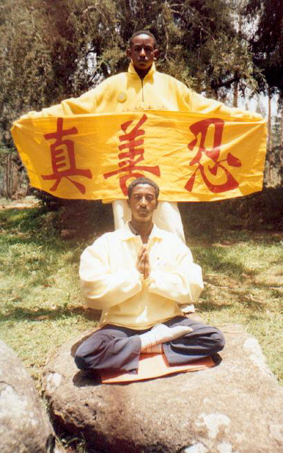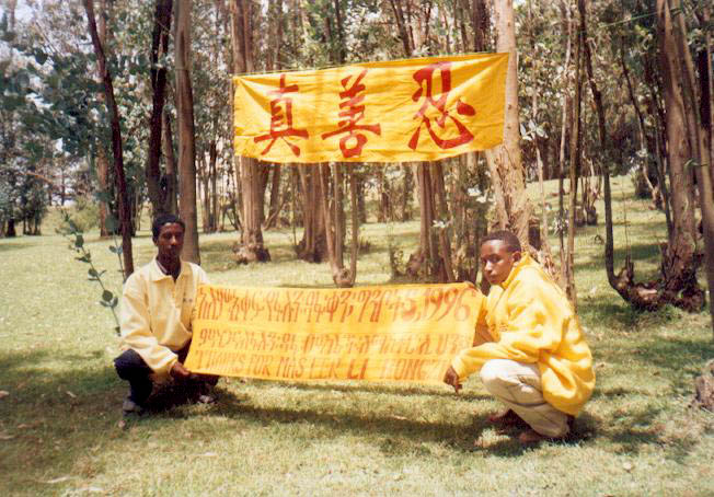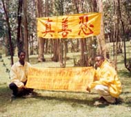 2004年5月13日,当地法轮功学员以集体炼功的方式祝贺李洪志师父的生日,这也是他们首次举办的集体活动,他们以一条横幅对法轮功创始人表达内心的感恩与衷心的祝福。