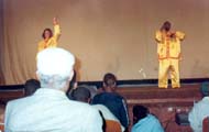 ![]() 在艺术表演厅展示五套功法 | ![]() 在艺术表演厅展示五套功法 | ![]() 上千观众观看学员们的功法展示 |