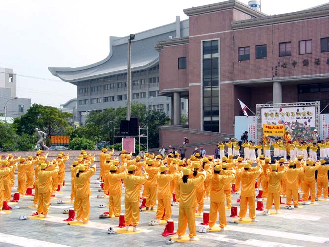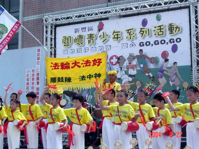 法轮功小弟子修炼“真、善、忍”个个身体健康、乖巧懂事,足以为青少年楷模,所以成为此次活动主角,上台表演腰鼓和展示五套功法,获得好评。现场还有真人模拟演出在中国对法轮功学员的酷刑迫害,触目惊心,民众看过直呼可怕,不敢想象。随着大陆江氏集团迫害的恶行不断曝光,连青少年都不放过,利用学校教育污蔑法轮功,毒害幼小纯洁的心灵,台湾民间团体纷纷呼吁全世界善良正义的人士,共同抵制江泽民集团对法轮功不人道的残酷迫害。