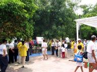 仁德青商会会长杨佑忠先生表示,曾经看过法轮功学员威振八方的腰鼓队表演,觉得不错,就极力邀请在开幕式上表演。在艳阳下,八十多位学员除表演腰鼓之外还演示了法轮大法的五套功法,获得现场嘉宾的赞赏。