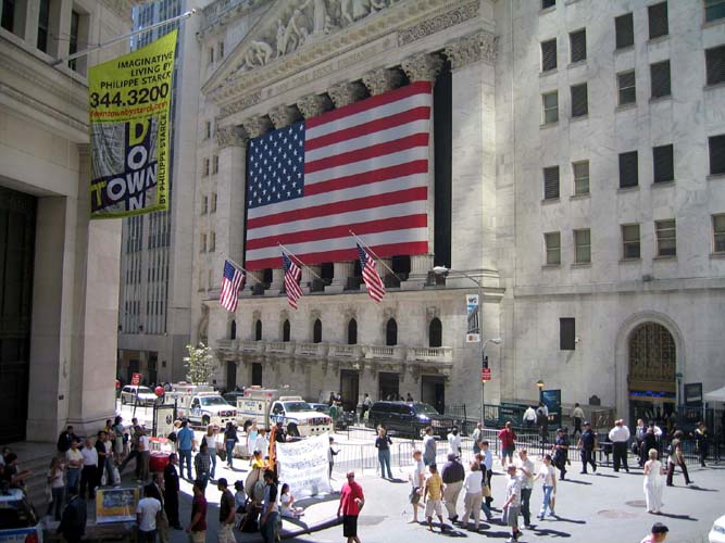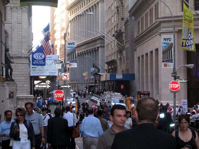 ![]() 华尔街一角 | ![]() 华尔街的人潮 |