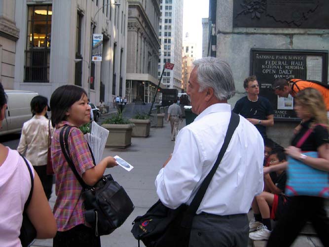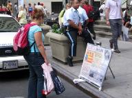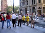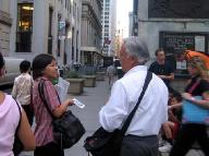 ![]() 过往路人在看真象图片 | ![]() 学员在华尔街附近发真象资料 |