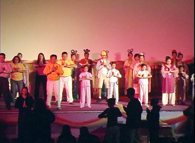 晚会以介绍法轮大法做为开始,节目安排丰富多彩:有小弟子的歌曲演唱和莲花舞蹈;有学员谈修炼心得、作见证;还有优美的中国传统舞蹈演出,其间穿插着数次功法表演。观众席上不时爆发出阵阵掌声。演出的最后一个节目是所有学员一起登上舞台,演示五套功法。观众们被这宁静、祥和的气氛深深感染着,有过半数的观众纷纷走上前来当场学功。