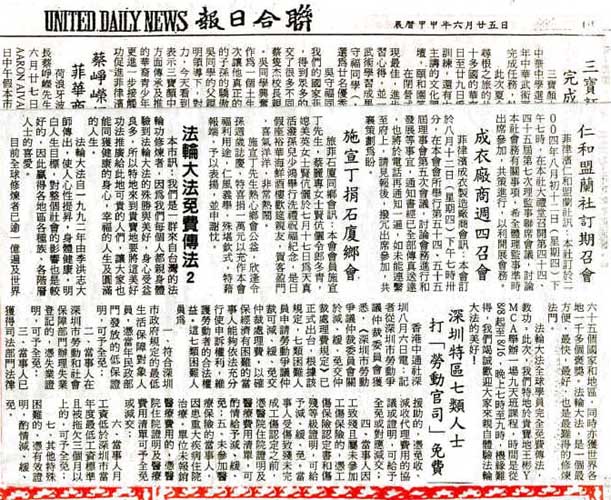 登报的效果非常好,当天刊出,下午去中国城洪法,就有人说看到报纸,晚上9天班就有华人来询问和学功。其实当地报社也有不愿登广告的,但是当他们发现所登出的内容是如此正面,就有报社愿意刊登,还留下他们的电话,希望以后要登报请直接找他们。