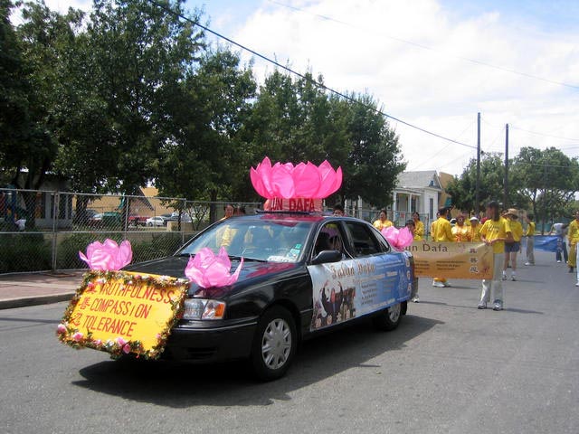 2004年9月4日,来自达拉斯、休斯顿、奥斯汀的大法学员云集圣城,和当地大法学员一起参加了本年度的游行。德州南部虽然炎热,当地民众热情不减。道路两旁的民众不时向大法学员的游行队伍发出阵阵掌声和欢呼声。当地媒体也很关注这次游行,多家媒体现场采访。当地电视台KVDA即时全程播放整个游行过程,并向全美西班牙后裔集中的城市播放。祥和、优美的功法和“真、善、忍”被传到千家万户。
