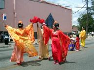![]() 花车准备进入起点 | ![]() 小弟子打横幅 |