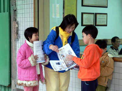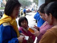 有一位大姐姐甚至当场就和妈妈学炼起功法来,而且妈妈还将《转法轮》拿给她看,她表示回去要去书局买书,要到炼功点学功。看到这么多有缘人要来认识法轮大法,我好开心,所以我和几位小弟子也在诊所前开始炼功,希望大家都能认识功法的美好,不要再花那么多时间去看医生了,请跟我们一起炼法轮功吧!