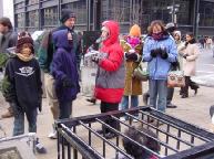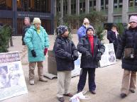 一个街头黑人歌唱家看到学员背包上的真象图片后,特别是高蓉蓉脸部被电击毁容的照片,非常的气愤。当学员告诉他江××是出于妒忌之心而迫害法轮功时,他向学员要江××的住址,他要写信质问江××为什么迫害法轮功。他还说,如果他看到江××,他要打断它的膝盖和腿。这位黑人对学员说,这个迫害更甚于希特勒对犹太人的迫害。学员告诉他,可以把信送到中国领事馆,并告诉他领事馆的地址。
