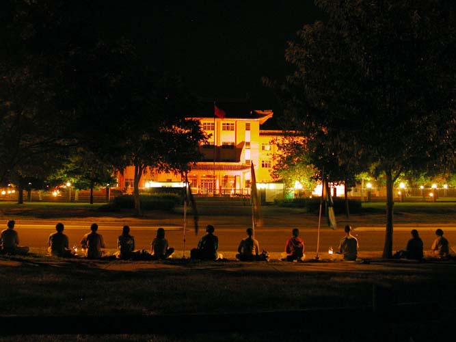 ![]() 2001年10月比利时集体炼功 | ![]() 德国小弟子打坐 |
