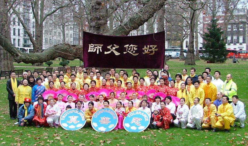 ![]() 英国伦敦集体炼功 | ![]() 2001年10月14日在英国伦敦鸽子广场集体炼功 |