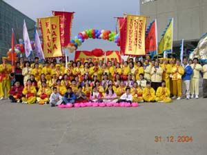 ![]() 土耳其学员在洪法节上炼功 | ![]() 奥地利学员集体炼功 |