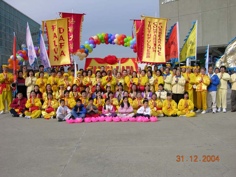 ![]() 2002年3月波兰和平广场集体炼功 | ![]() 希腊奥林匹克运动场炼功洪法 |