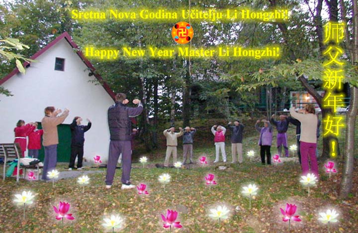 慈悲伟大的师父:德国全体大法弟子恭祝您新年好!
