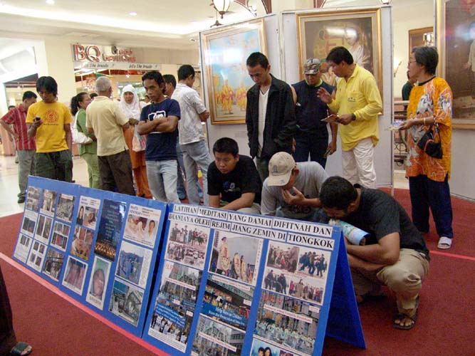 来观看的民众络绎不绝,学员分资料讲真象,民众明白画展的涵义后,都表示同情和支持,没有一个说不满。艺术画展继续展至第二天晚上十点圆满结束。