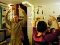 最后,学员们展示五套功法并且同时说明功法的特点。在展示功法时,在场的人都感到强大的能量,并且立即感受到暖和,脸颊也红润起来了。一名女士向学员们开玩笑说:“有你们三位法轮功学员在此,我们都不需要暖气了!”
