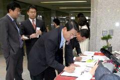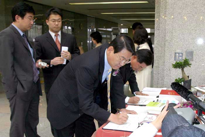 ![]() 开幕式剪彩 | ![]() 访问录上签名的国会议员们 |
