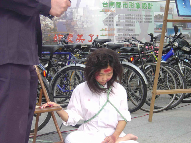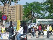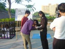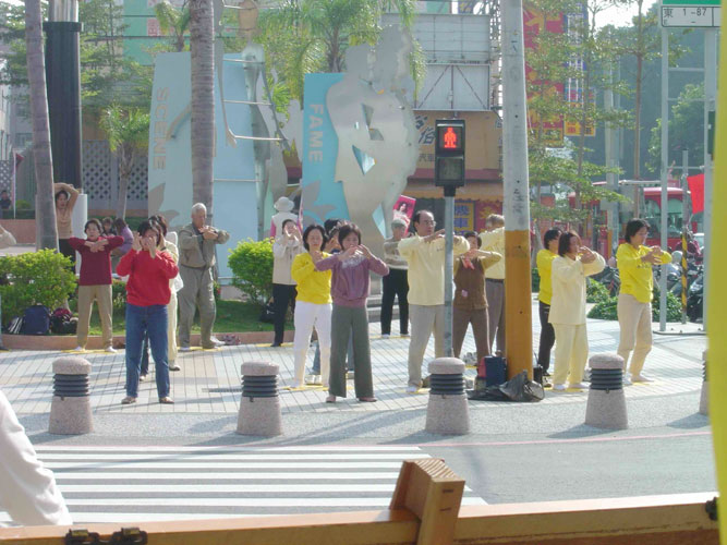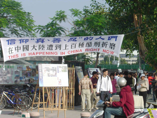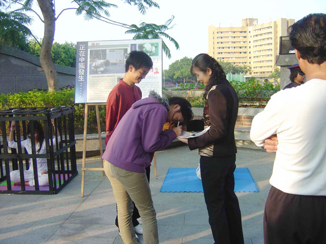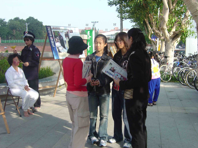 法轮功学员们在火车站前广场展示了优美的五套功法,其他学员则在酷刑展旁发真象资料并向观看民众解说。很多学生看到酷刑展时都觉得非常的残酷,不敢相信在21世纪,中国大陆还发生这样的迫害的事件,并主动在明信片上签名支持要求停止迫害法轮功。
