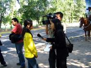 ![]() 会议中心前媒体采访 | ![]() 接受日本媒体采访 | ![]() 在APEC会议中心前发正念 |