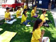 ![]() 在市中心广场 | ![]() 震撼人心的酷刑展板 | ![]() 在APEC会议中心前炼功 |