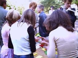 在活动期间很多孩子和大人都非常有兴致的学习折叠纸莲花,莲花所代表的修炼人出淤泥而不染的内涵更引起了人们的兴趣。